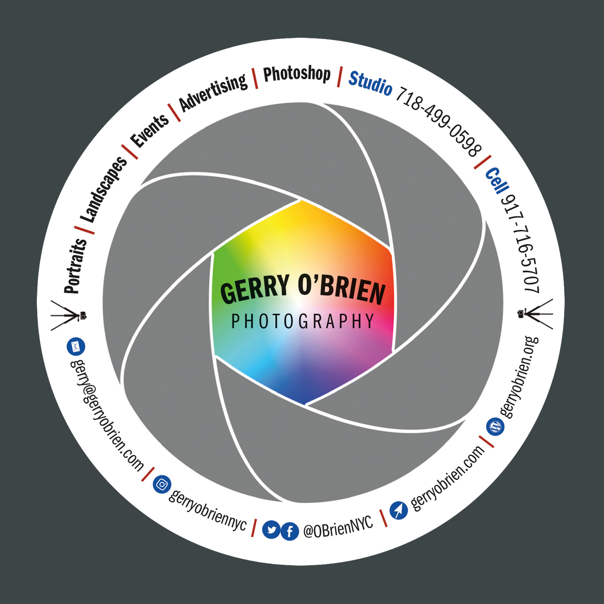 My own 4-inch round Photography business card and logo.